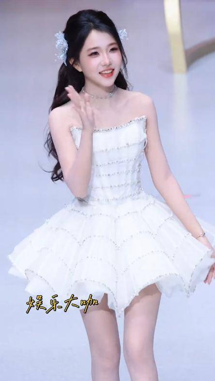 裙子是抹胸款式,露出纤细的脖颈和精致的锁骨,衬得她皮肤愈发白皙。