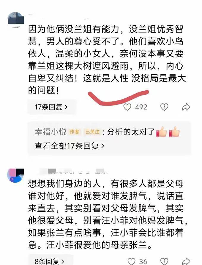 经过网友 的调查,他们发现了事情的真正原因 。在整个事件中,张兰 的行为过于霸道, 这也是为什么汪大爷和 他的儿子都 对她 产生了反感的原因。 在那个时候,汪大爷有 了自己 心仪的人,她 毫不犹豫地介入了 其中。在怀 上小菲 之后,汪大爷 的旧 爱重新燃 起, 于是她 选择离婚 并独自 抚养孩子。 有了小菲 在身边,张兰 竭尽全力地赚钱,只为 了给小菲 创造一个富 足的生活 环境。