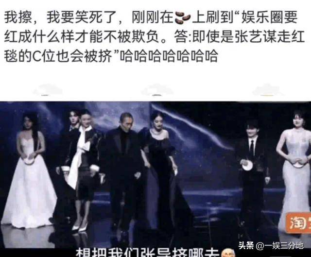 网友边嘲笑她边心疼张艺谋,问“娱乐圈里要红成什么样才能不被欺负”,答“即使是张艺谋走红毯,C位也要被挤”。