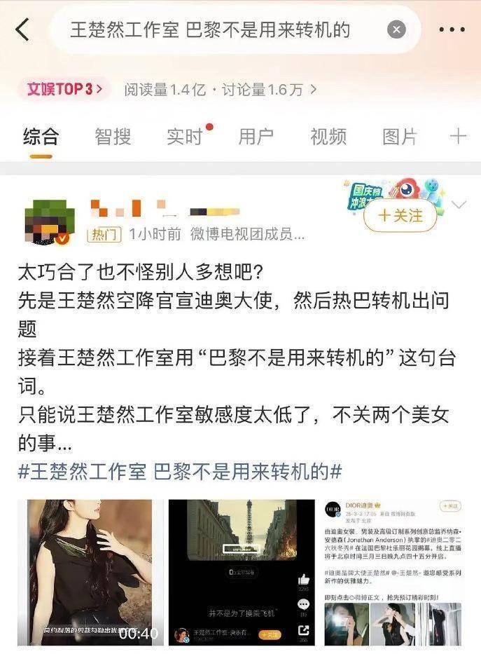 王楚然官宣迪奥大使疑似捡漏热巴,一句“巴黎不是用来转机的”没留一丝体面!