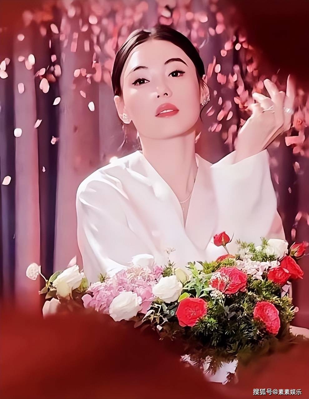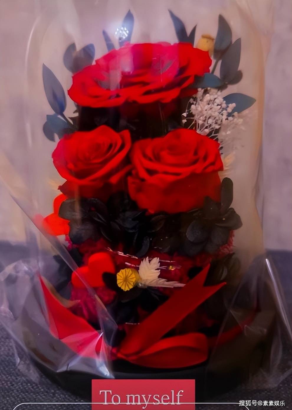 她给自己送最美的祝福,同时晒出给自己准备的玫瑰花。