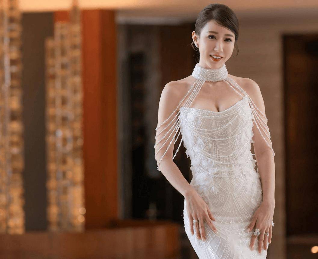 节目《3日2夜》监制张志明在社交网分享了陈沛汶与丈夫婚宴进场的片段,可见陈沛汶身穿一袭超低胸一字肩拖尾婚纱,丰满上围十分抢眼,加上腰部透视蕾丝设计,性感迷人。