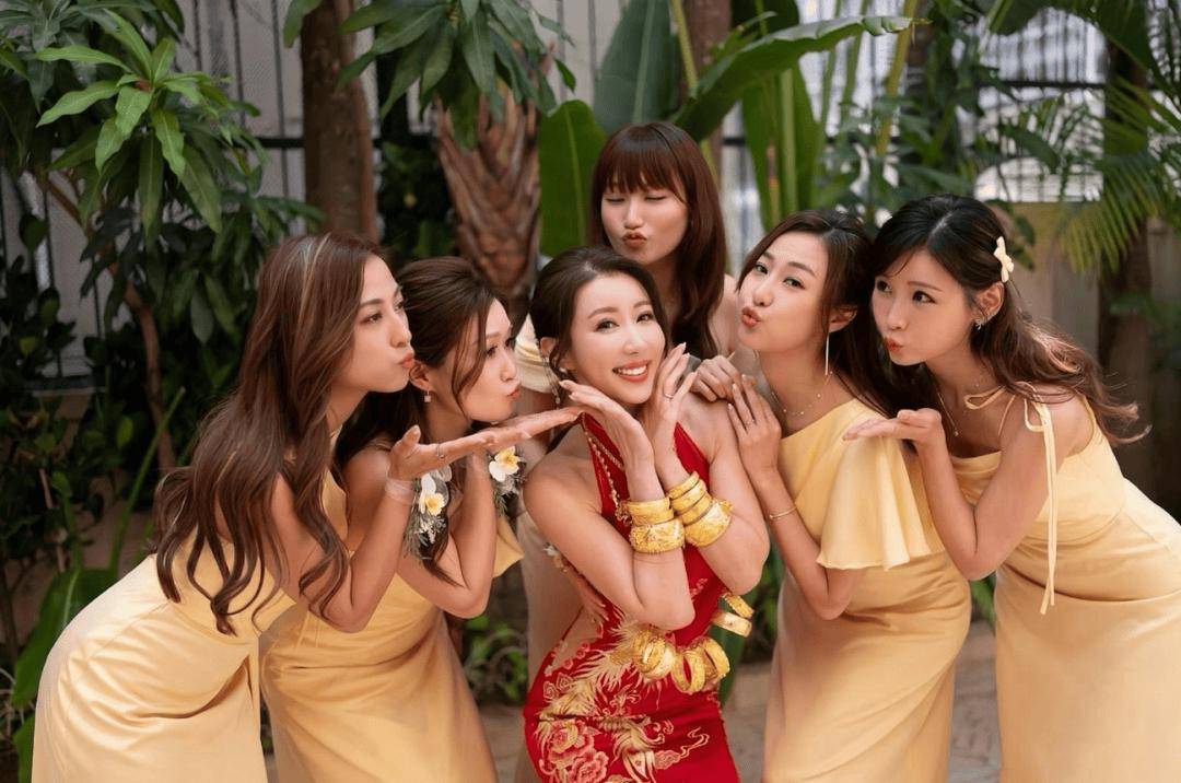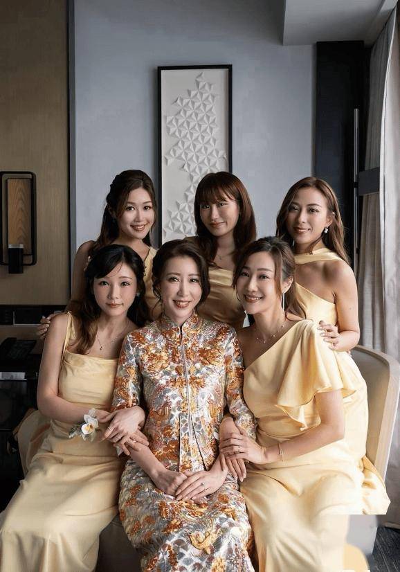日前陈婉衡正式出嫁,伴娘包括简淑儿(Jessica)和朱智贤(Ashley)。早上,陈沛汶佩戴一身金器,其中有巨型金手镯、大型金花链、金猪牌,分量十足。中式礼服方面,她身穿粉钻金凤彩尾褂皇,新郎搭配酒红真丝圆龙马褂!
