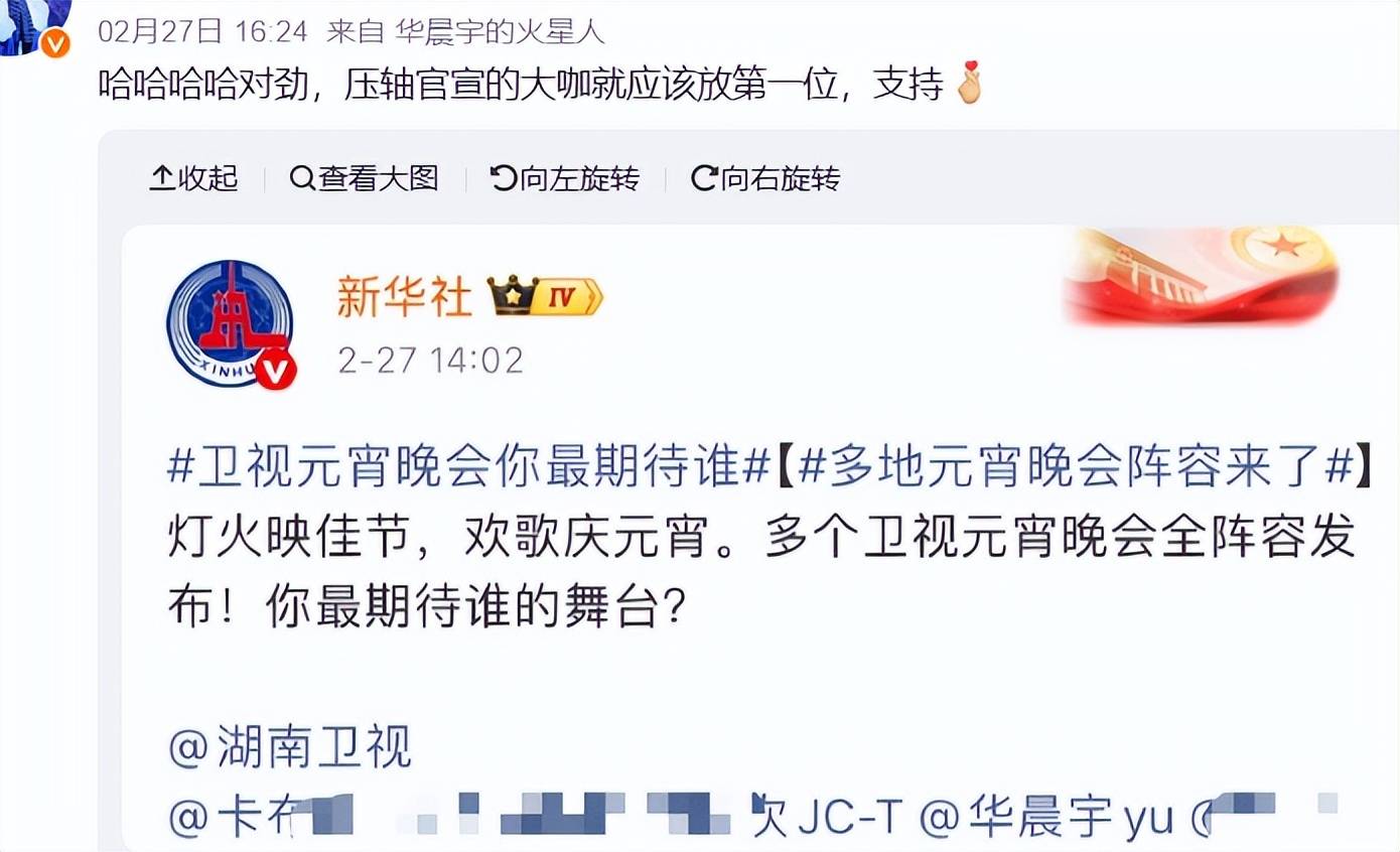 他在这场元宵晚会上还是压轴位,按照官宣顺序来看,算整个台最大的咖。