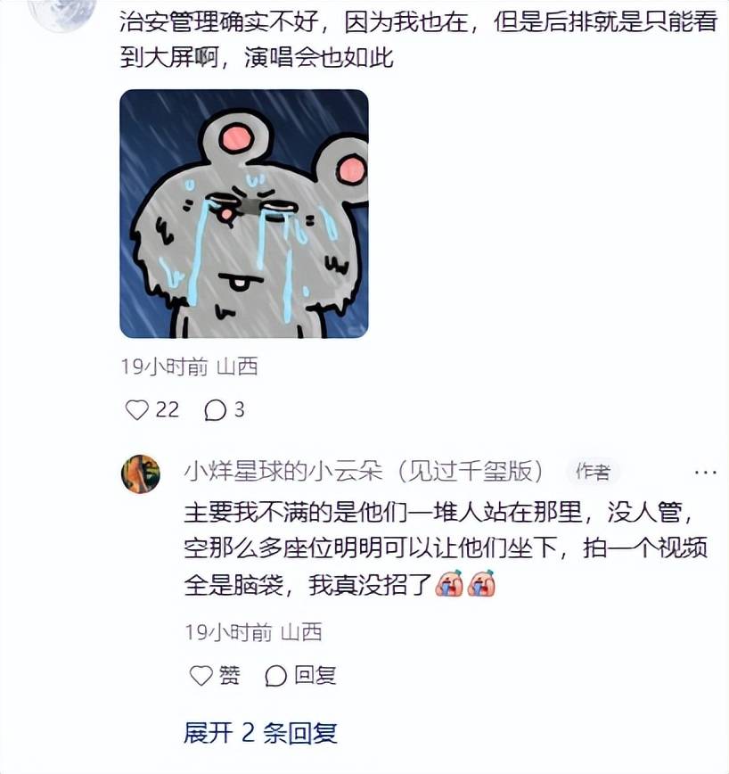 首先就是现场观众倒苦水来了,晒图称现场管理混乱,现场都没什么工作人员维持秩序,全凭自觉,很多观众乱坐。