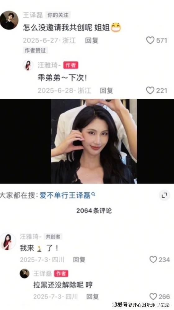 为了保护王译磊的事业,汪雅琦在粉丝问“你俩就不能是真的吗?赞了我就当真了哈”时,回复道“不是哈只是很多年的好朋友”。却又忍不住在被问“感觉你喜欢王译磊”时回复“你不喜欢你的好朋友吗?”后面王译磊是事业好起来了,汪雅琦还在直播时说不想拖累王译磊,想要继续搭的话,她要好好努力了。
