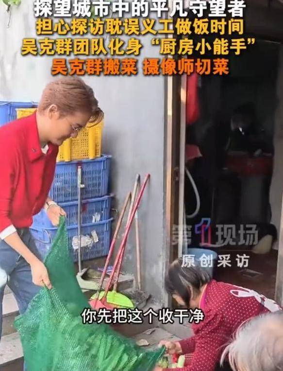 吴克群在奶奶们离去后,与他的团队和部分粉丝一同开始了在爱心餐厅的日常工作,这包括了洗菜等任务。