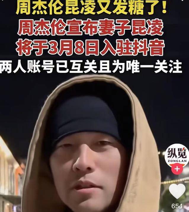 3月7日,已经很长时间没有使用抖音的周杰伦发布了一条抖音消息,宣布他的妻子昆凌即将加入抖音平台。
