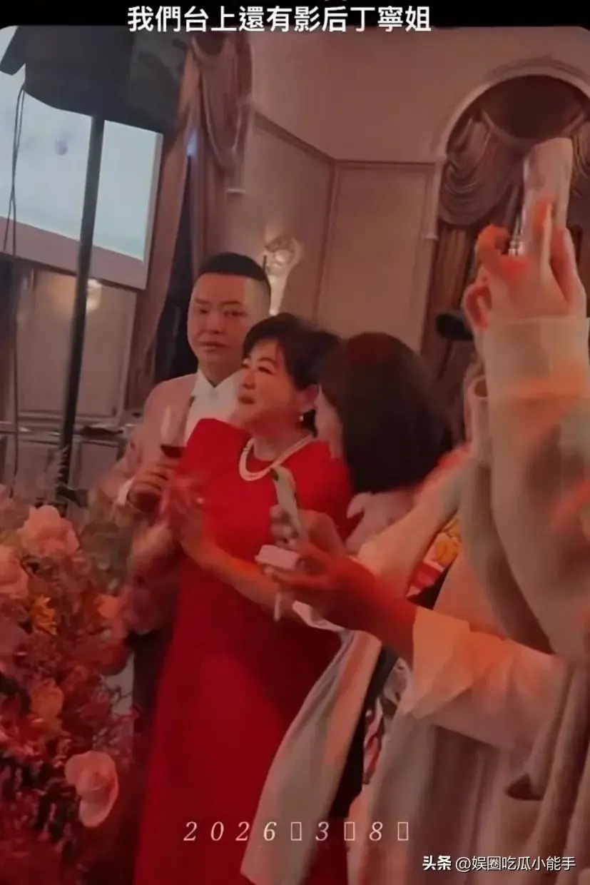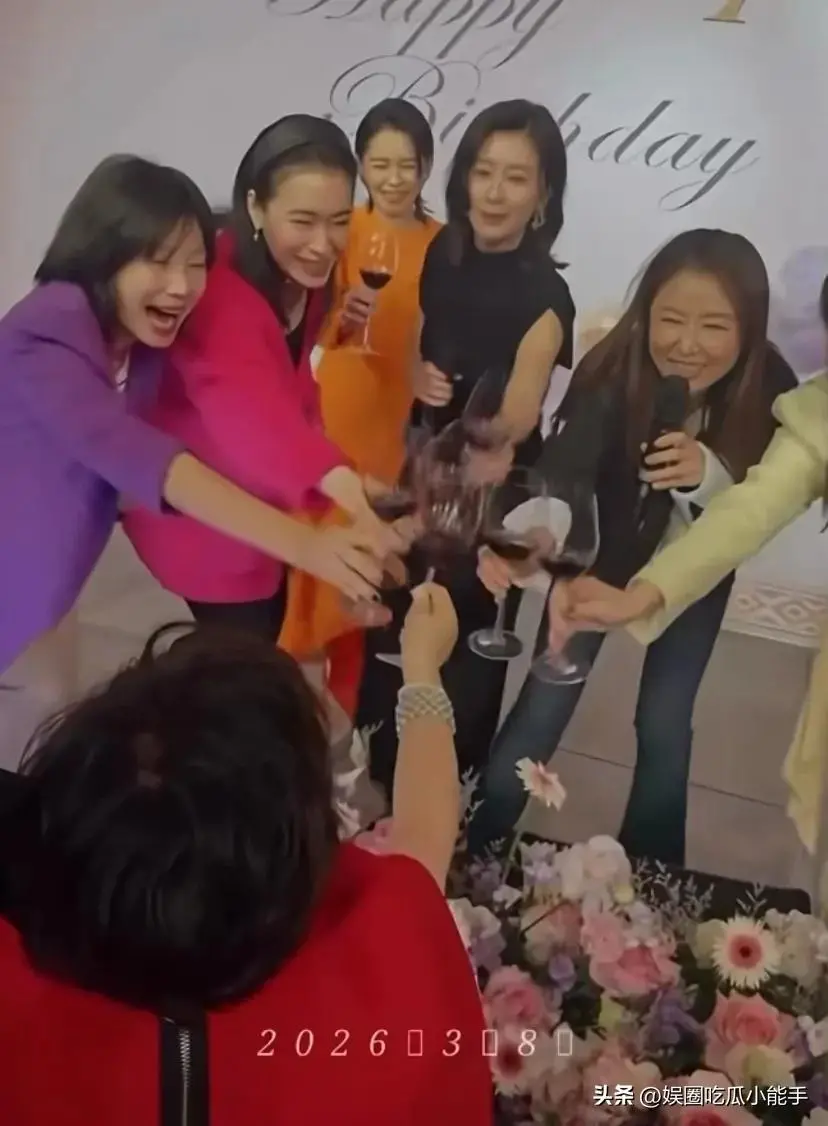 她们都端着酒杯,然后和台下的徐妈妈敬酒,来庆祝她的70岁生日。