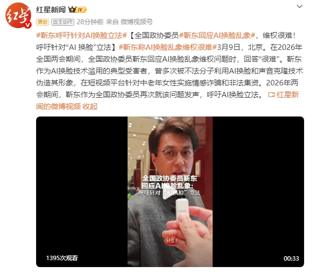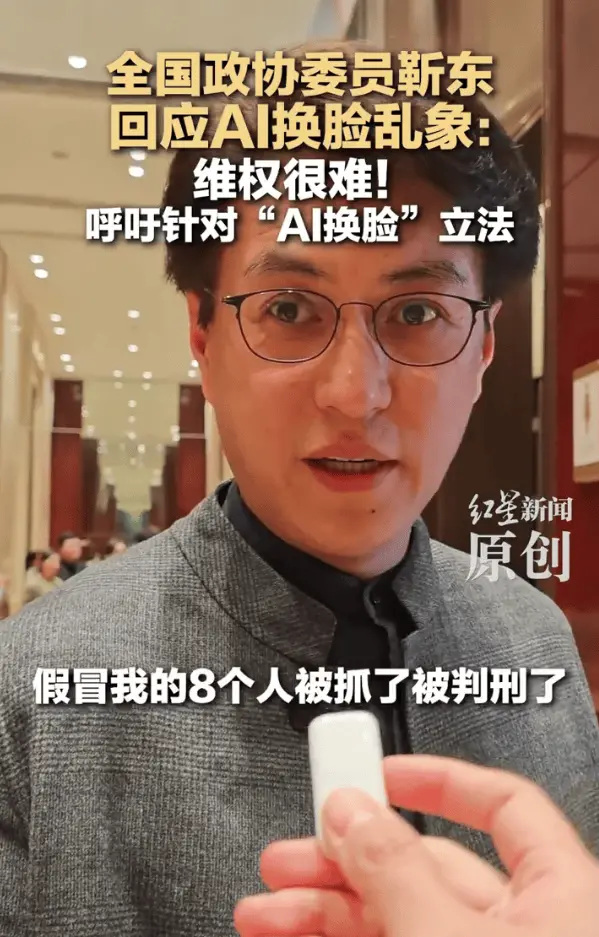 3月9日,全国政协委员靳东在谈及AI换脸乱象的维权难题时直言“很难”。作为AI换脸滥用的典型受害者,他曾多次被不法分子通过换脸、克隆声音等手段伪造形象,在短视频平台对中老年女性实施情感诈骗与非法集资。此次,靳东以政协委员身份再次就此发声,呼吁为AI换脸相关行为专门立法。