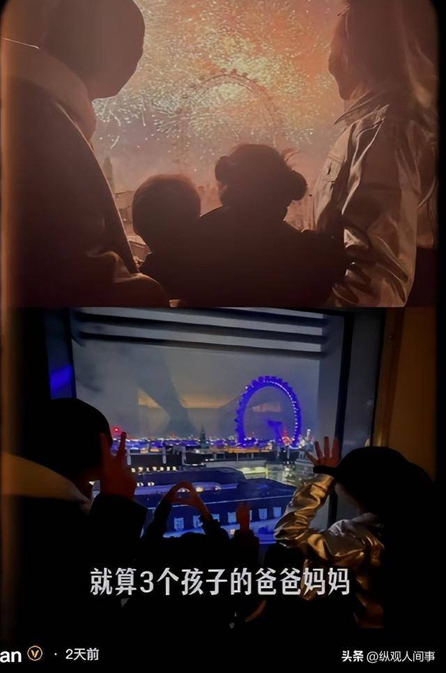 视频中记录着两人带着孩子在白雪世界坐驯鹿雪橇、在伦敦的烟火中迎接新岁。