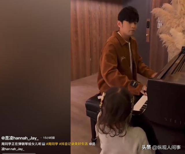 这条画面也被单独剪辑成视频发布,配文 “周同学正在弹钢琴给女儿听”,简单的文字,却满是幸福。