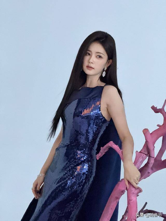 配上一头顺直的黑长直,整个人瞬间褪去了平时的灵动可爱,多了几分成熟大女主的气场。