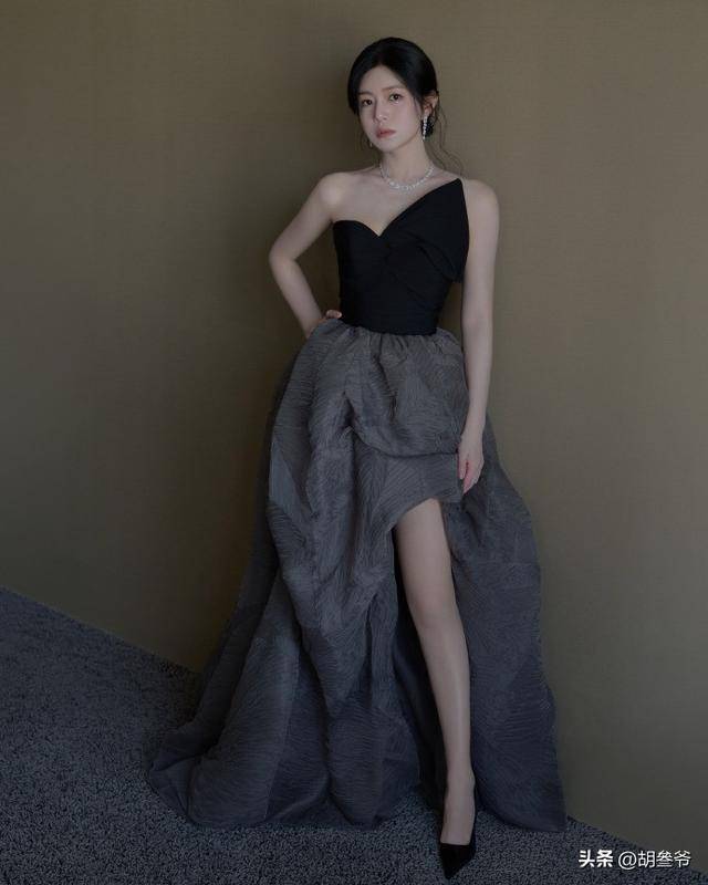 这身礼服虽然被她调侃成“被子”,但也有不一样的效果。