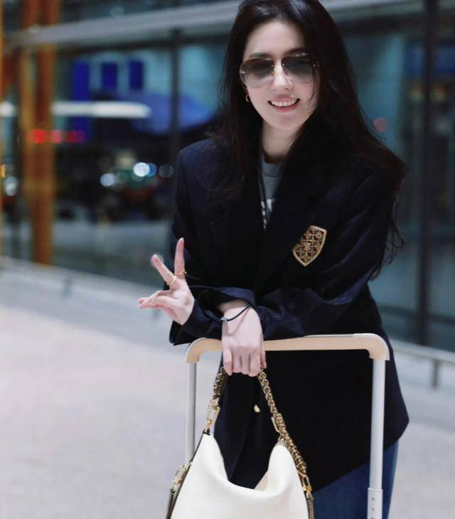 当天的刘亦菲穿搭特别有味道,棕色的墨镜架在鼻梁上,衬得眉眼更有轮廓。