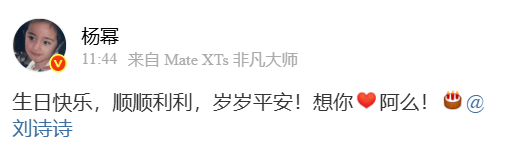 这对85花的发展不相上下,即便碰到了《红妖小红娘》两人分饰不同单元的主演也没什么矛盾。这也是杨幂连续5年为刘诗诗庆生了,而且还是卡点庆生,选择的是11:44,非常的用心了,除了每个节气杨幂会发文,其他发文大多都是希望平安、健康之类的话。