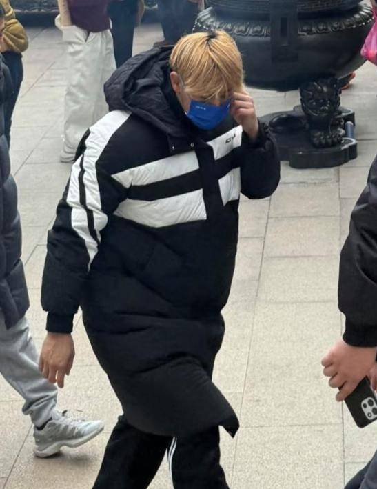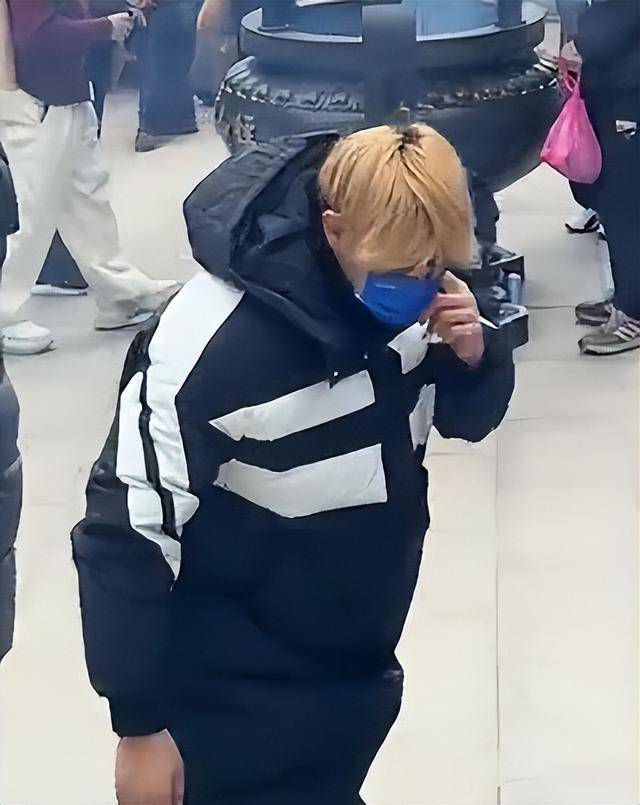 宽松的羽绒服穿在身上,显得身材格外臃肿,完全没了当年的挺拔感,头发还是标志性的黄色,却看着有些毛躁,不像舞台上那样打理得一丝不苟。