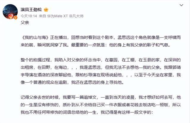 《我的山与海》正在热播,谭松韵挑大梁演活了方婉之,可观众却被配角王劲松狠狠圈粉。他演的养父孟思远一举一动都戳中人心。直到3月10日他发了篇怀念父亲的长文,大家才懂这份演