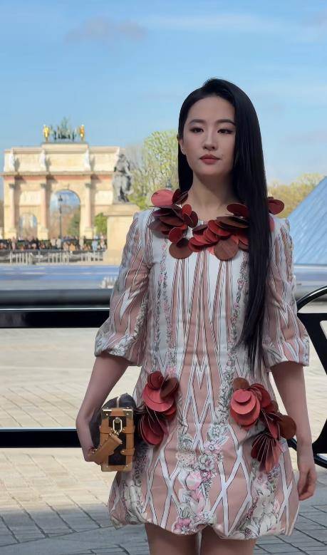 镜头拉近,刘亦菲身着的正是LV 2026春夏系列红色短裙。裙身被立体花瓣层层包裹,宛如一朵盛放的红玫瑰,唇色与圆形红色配饰巧妙呼应,整体造型被外媒盛赞为“行走的玫瑰花”。细心的粉丝还发现,这条看似浪漫至死的裙装,竟暗藏实用口袋,巧妙点题了品牌一贯的实用主义美学内核,堪称“仙气与地气并存”。