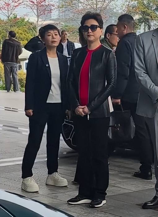 杨澜就跟在他旁边,一身黑外套配黑裤黑鞋,里面搭了件玫红色打底衫,脸上能看出明显的年龄感,全程像个小跟班似的,脚步都跟着吴征的节奏走。