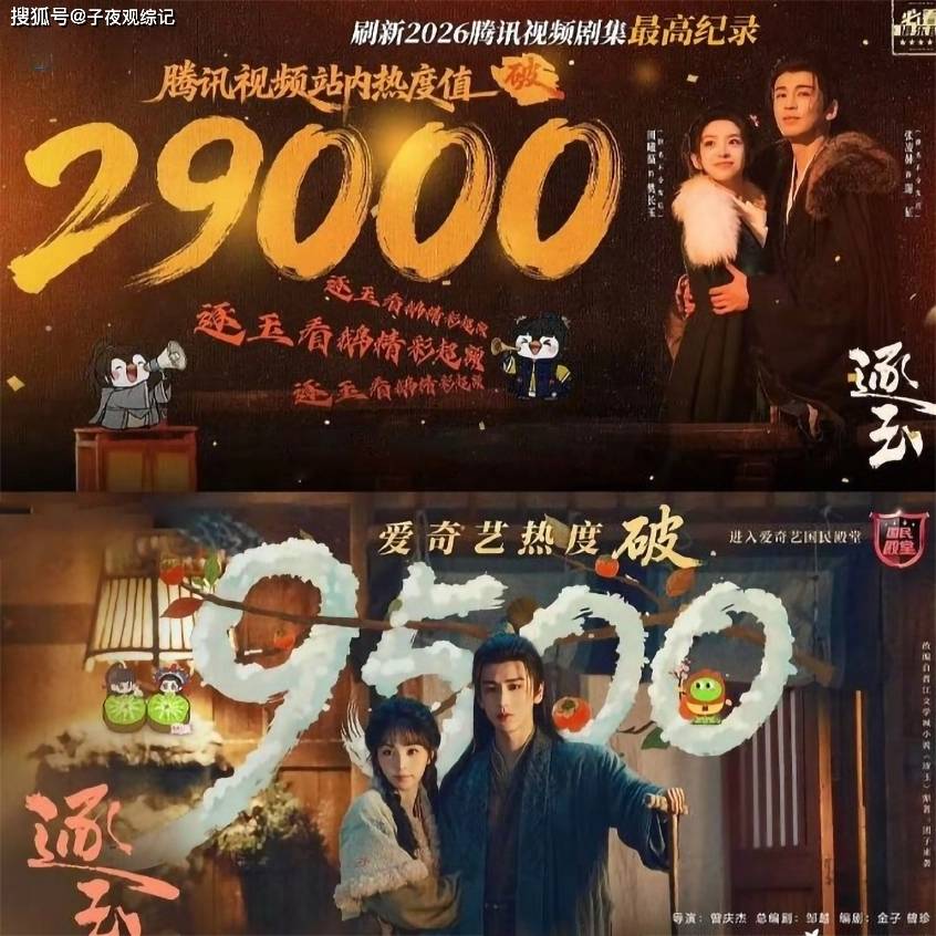 《逐玉》在腾讯视频上线之后,仅仅15分钟热度就超过23000,这是因为张凌赫的战损造型还有田曦薇那句我杀猪养你的反常规台词,三天以内热度上升到29000,而且还在双平台一直占据首位,算得上是2026年古装偶像剧中的现象级爆款。