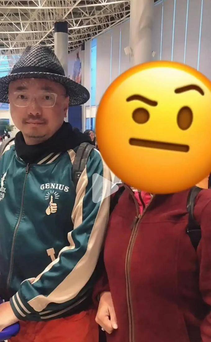 过安检时,徐峥一个人推了好几个大行李箱,旁边跟了个穿红外套的小姐。