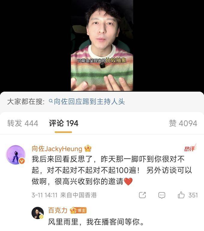 百克力也没有想到自己就主持一场晚会,还被向佐飞踢,事情发酵后,没有等来向佐的道歉,自己还要先出来解释,态度卑微,给向佐递台阶!