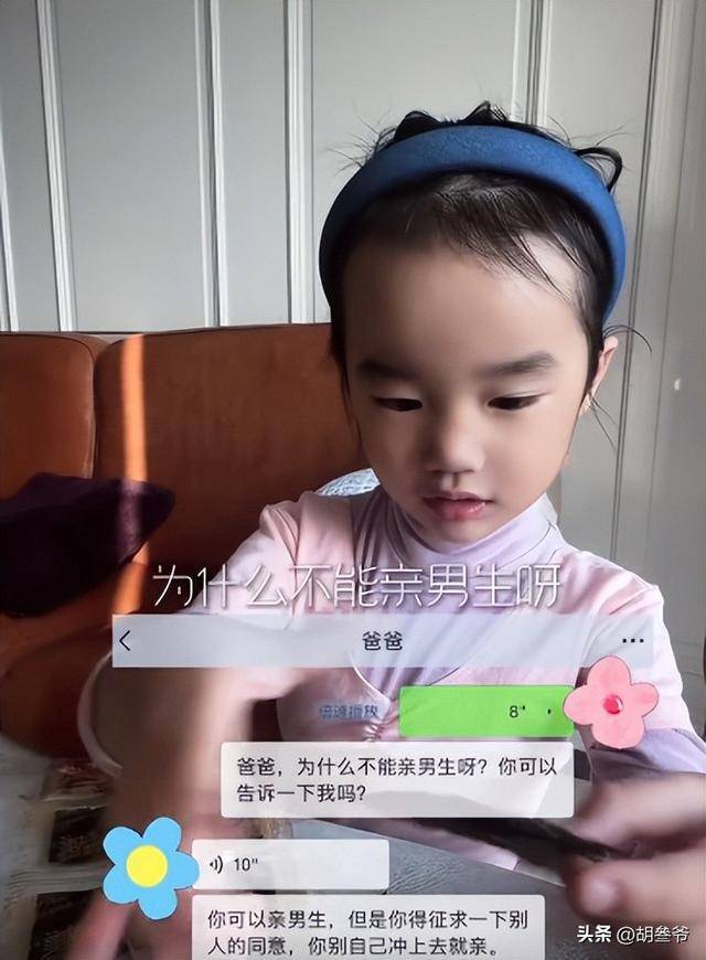 开头海哈金喜就晒出了夏夏和爸爸李亚鹏的聊天记录,小小的夏夏天真发问“为什么不能亲男生”。