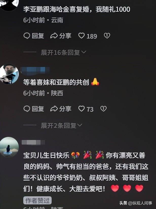 这一细节再次让 “李亚鹏海哈金喜复合” 的话题在评论区瞬间刷屏。