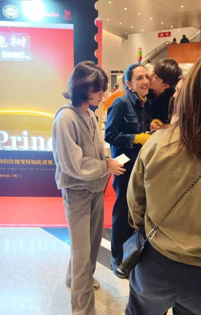 虽说诺一已年满15周年有了,但身高相较于妈妈而言超出了一大段距离好多,然而跟妈妈之间的互动仍旧是格外甜度满满。先前的某一次,有路过途中的之人抓拍到,诺一于街道之上径直向一侧转动脑袋而后亲吻了妈妈的面庞。