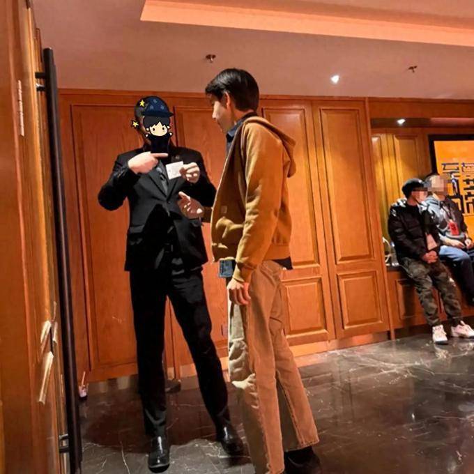 在电影院 的入口 处, 有网友 捕捉到的照片 显示,诺一 孤独 地站 在那里,他正 在与一名穿 着黑 色西装的工作人员 交谈,他身 穿休闲 风格的衣服, 包括棕色 的卫衣 和工装裤, 不过脚上 蹬着一双黑 色皮鞋, 如此混搭还 是很有范 的。