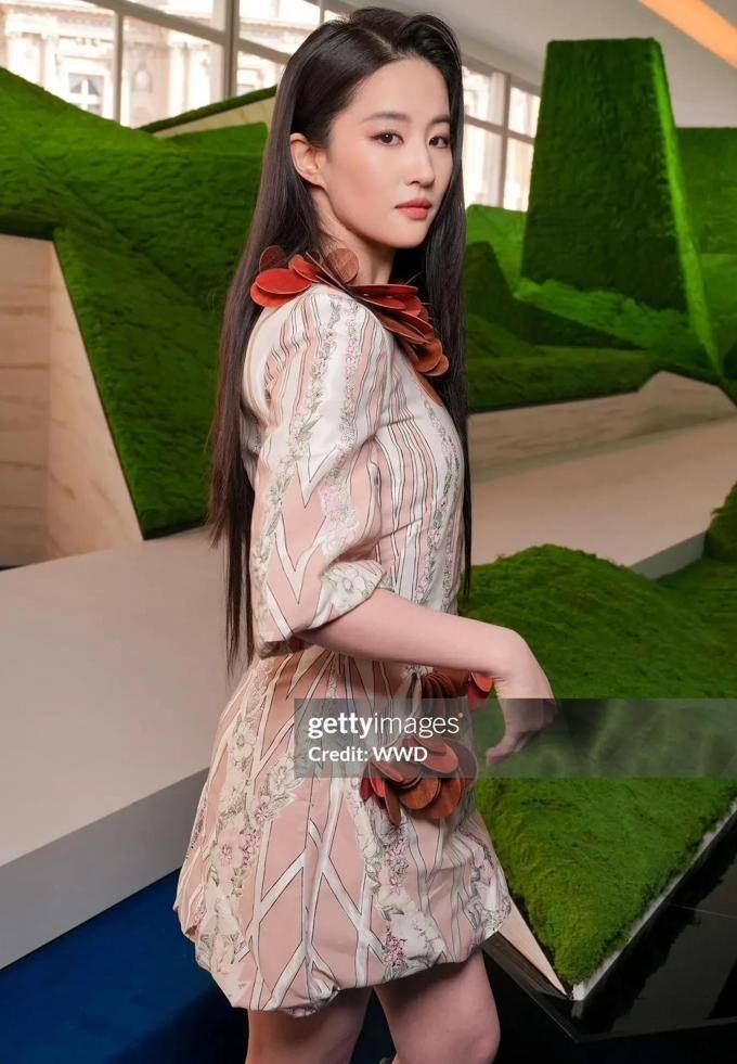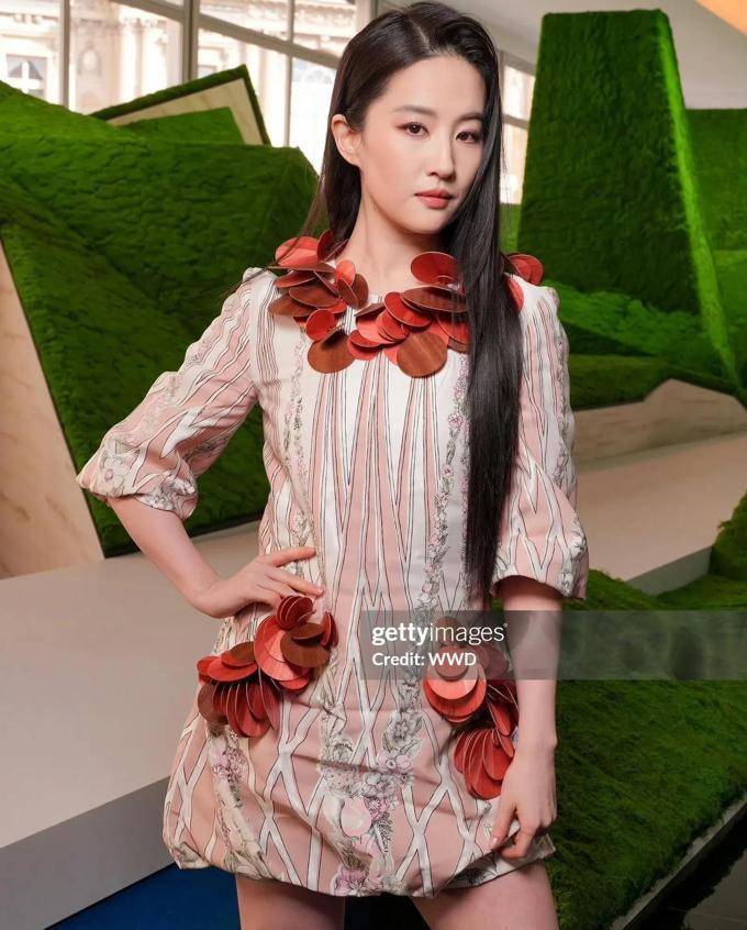 那件粉红色的印花连衣裙是刘亦菲这次去参加时装秀时所穿的,没想到它竟然变成了全场讨论最多的造型。这件衣物的材料看起来并不出众,但它的整个身体都留有明显的褶皱痕迹。