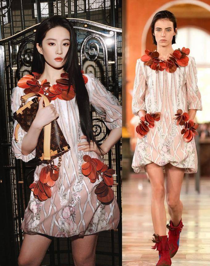 这件事的真相是,她完全依赖自己的颜值来支撑这件衣服。这条由LV设计的裙子,配上模特的红色流苏鞋,最初就引起了时尚博主的讨论,但后来即使穿在刘亦菲身上,也未能挽回。