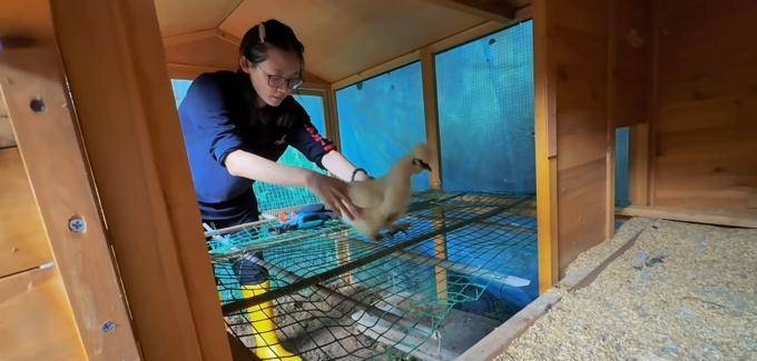 当大女儿把小鸡带回笼子的时候,她的动作非常直接和利落,给人一种很像大姐的感觉。