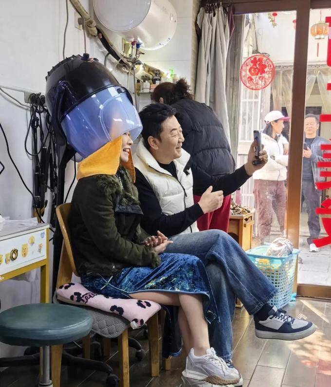 在摄影的闲暇时刻,郭涛耐心地指导妻子如何摆出合适的姿势,而李燃则是微笑着全神贯注地听着。两人在一起的氛围既安静又温暖,显然是多年的陪伴和默契的体现。