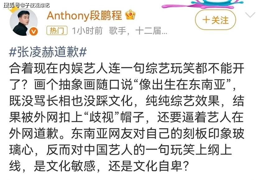 更微妙的是张凌赫的危机应对3月10号赶忙在Ins发布中英双语道歉内容,着重绝无歧视之意,甚至还对东南亚粉丝多年的支持表示了感激
