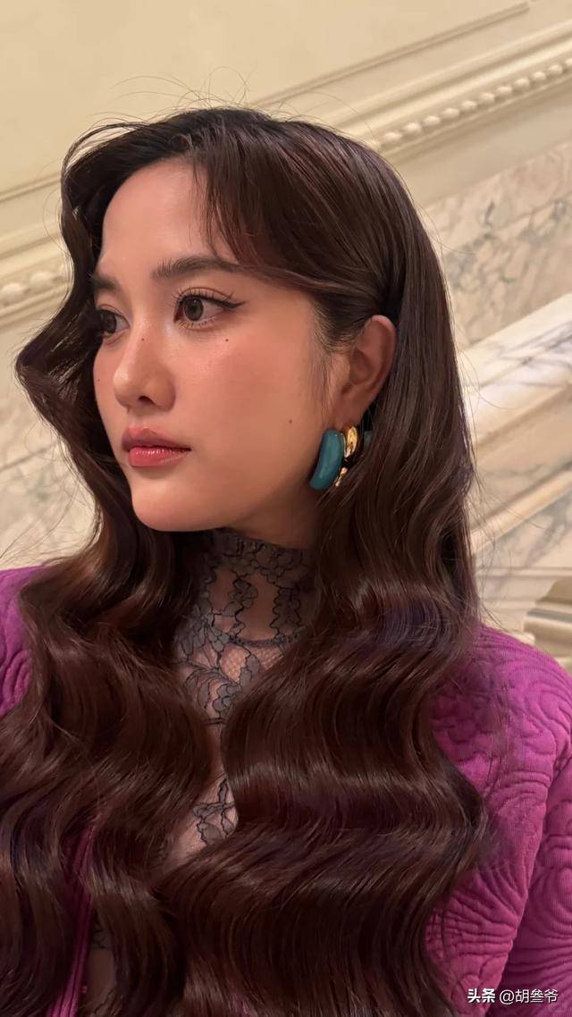 Freen这次的造型真的太出彩了,一头蓬松的卷发染了玫红色调,衬得肤色白到发光。