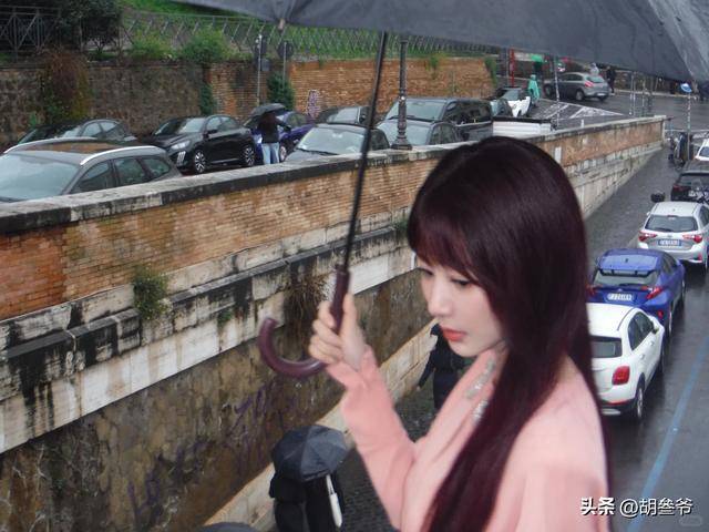 当天罗马还下着雨,她撑着伞走在秀场的画面被G社的镜头捕捉。