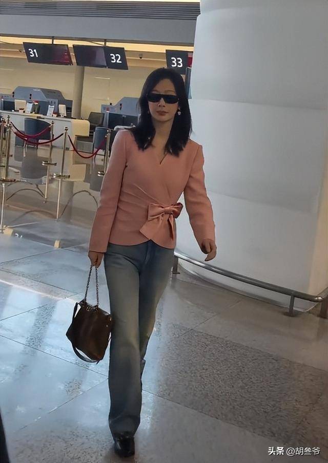 从机场的生图镜头看,不少网友觉得粉色西装太显黑,而且牛仔裤版型也很肥大,裤脚堆在鞋口显得比例不好。