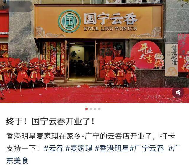 她一直表达自己喜欢吃广宁的云吞,一口气可以吃三碗,今年2月,她开了一家“国宁云吞”店,受到了关注。