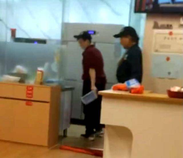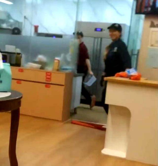 网友应该是偷拍,麦家琪像平常一样,在店里面工作,跟店员聊天。