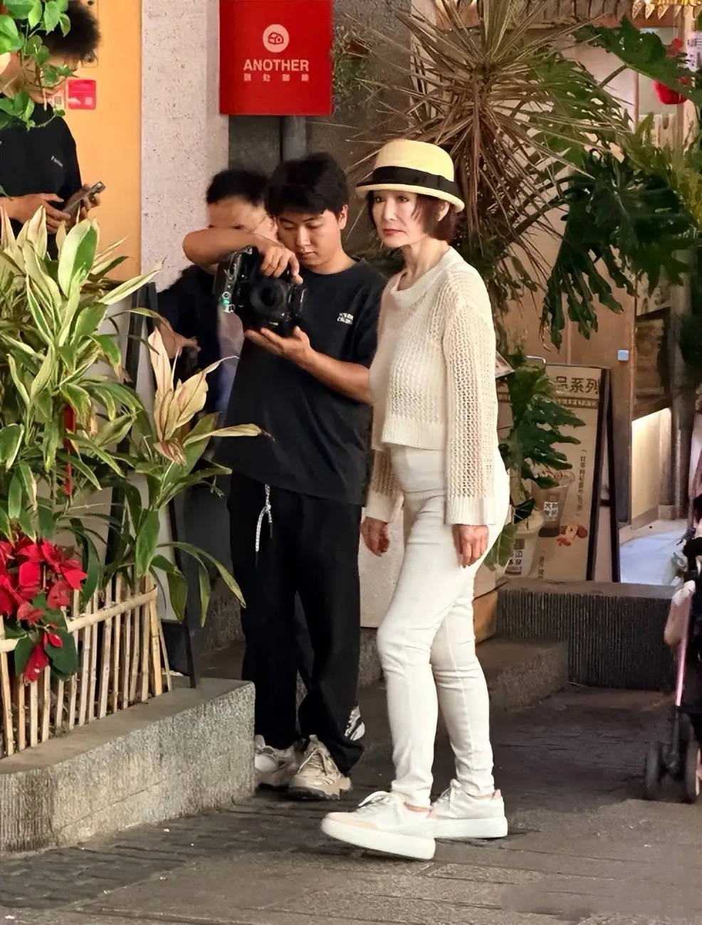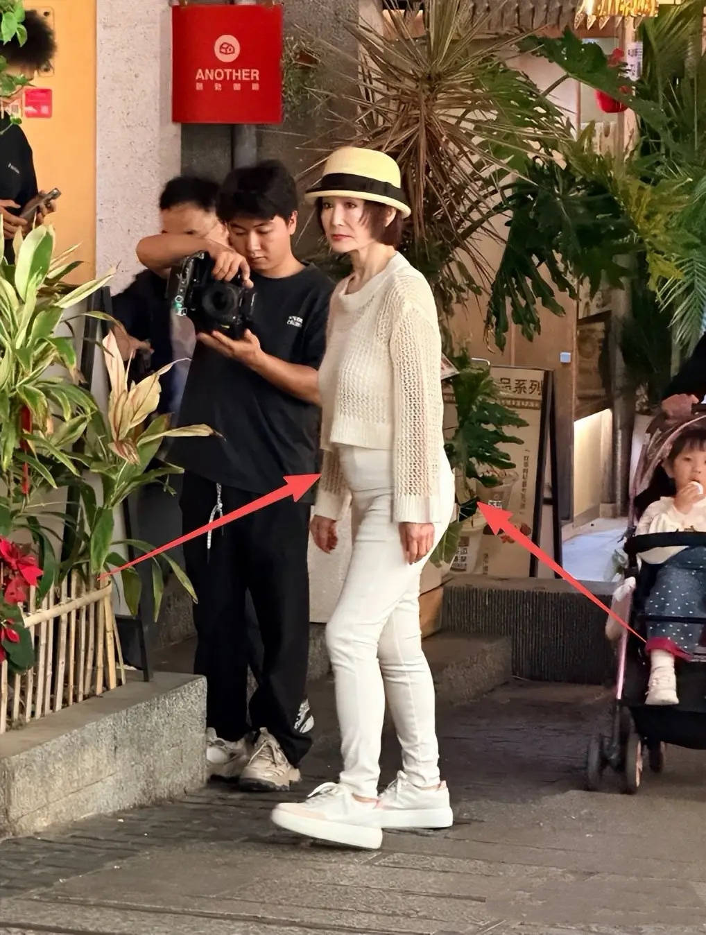 即便是在街边被偶遇,她也不需要工作人员搀扶。甚至和店员同框的时候,看背影就像是两姐妹。
