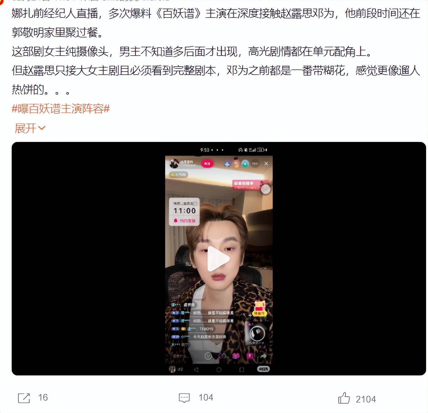 但这里还有个大反转!有圈内人直播爆料,说《百妖谱》确实在深度接触两人。前段时间邓为还去郭敬明家里聚餐了。