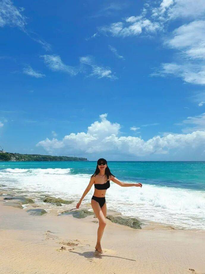 2026年3月12日,菅纫姿在个人微博分享了一组巴厘岛海边的绿色比基尼写真,以“阳光、沙滩、海风、落日和健康自由的我”为主题,绝对性感火辣!菅纫姿身穿绿色比基尼,她俏