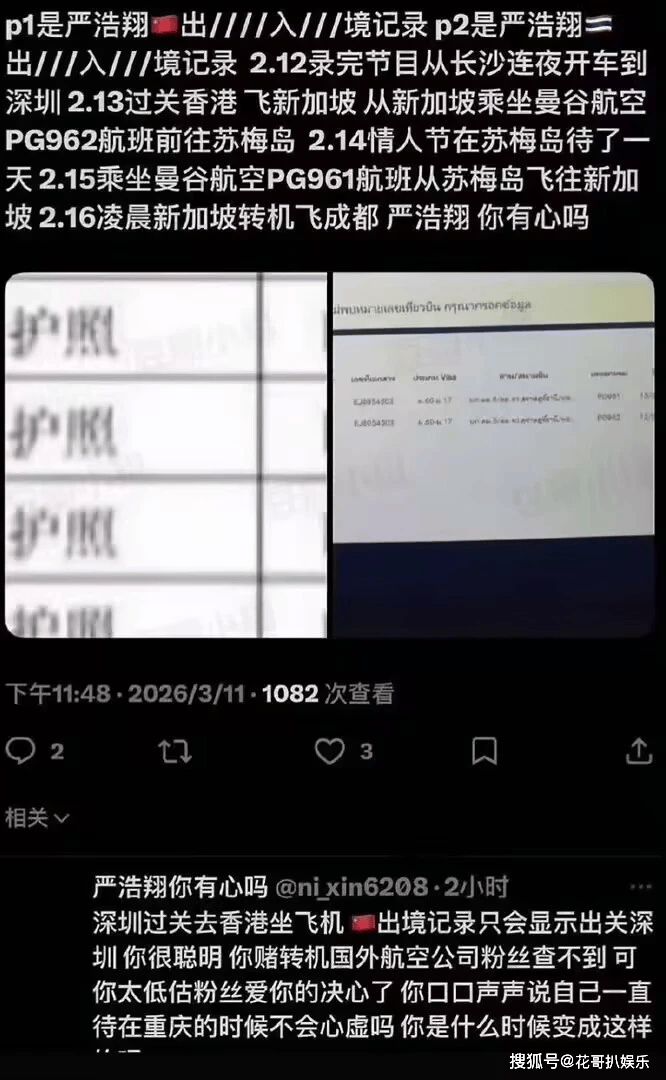 这行程规划得,简直比谍战片还烧脑。2月12日在长沙录完节目,他没有选择休息,而是连夜驱车赶往深圳。紧接着13号过关香港,飞新加坡,再转曼谷航空的航班直奔泰国苏梅岛。最关键的是2月14日情人节当天,他人就在那个浪漫的海岛上。待了一天后,又马不停蹄地原路返回,16日凌晨落地成都。