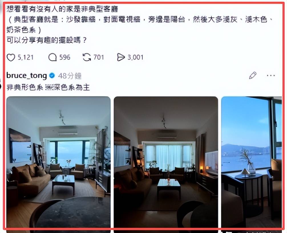 这波热度,来自汤镇业的大儿子汤君慈(Bruce)。他在网上分享了一组家居照,本来是回应网友想找“少硬装、靠软装出效果”的参考。结果一发出来,评论区直接炸开:这也太会住了。