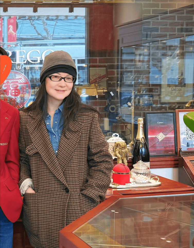 更没想到的是,她一点都不“用力”。没浓妆,没滤镜,没把自己包装成什么“冻龄女神”。一顶帽子,一副眼镜,格子西装叠穿牛仔衬衫,白色阔腿裤往那一站,像是刚从老上海电影里走出来,又像隔壁弄堂里最会穿的阿姐。人到54岁,还能把“自然老去”穿出味道,这事本身就挺有看头。