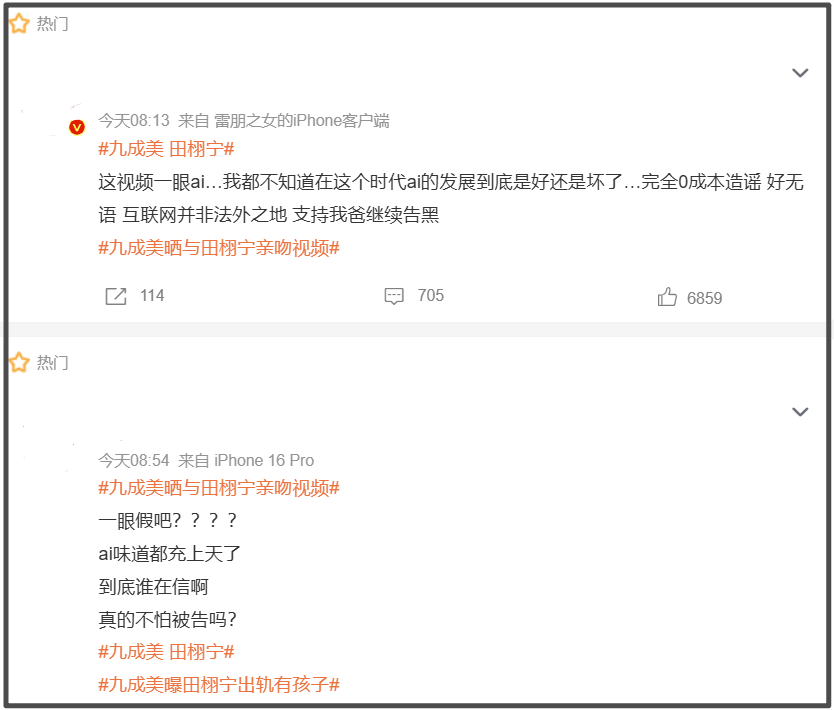 随着九成美、田栩宁大量亲密照曝光,越来越多网友站在了九成美这边,纷纷在她的评论区表示支持,认为九成美曝光的亲密照真实度极高,一点都不像ai。