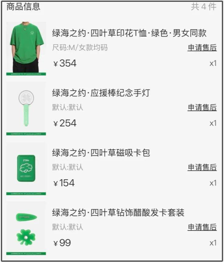 还有99块钱的发卡、154块钱的卡包、354块钱的T恤,都是李易峰曼谷演唱会周边,无一不是在割韭菜。