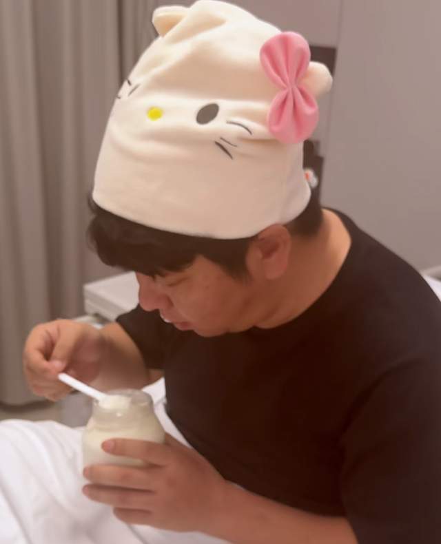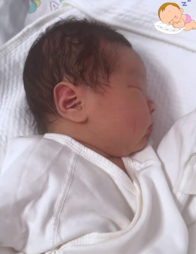 曝光的画面中,小家伙穿着白色的睡衣,静静躺在婴儿床上。镜头一转,便是刘天佐戴着帽子“充当”产妇,上演了一场爆笑的画面。